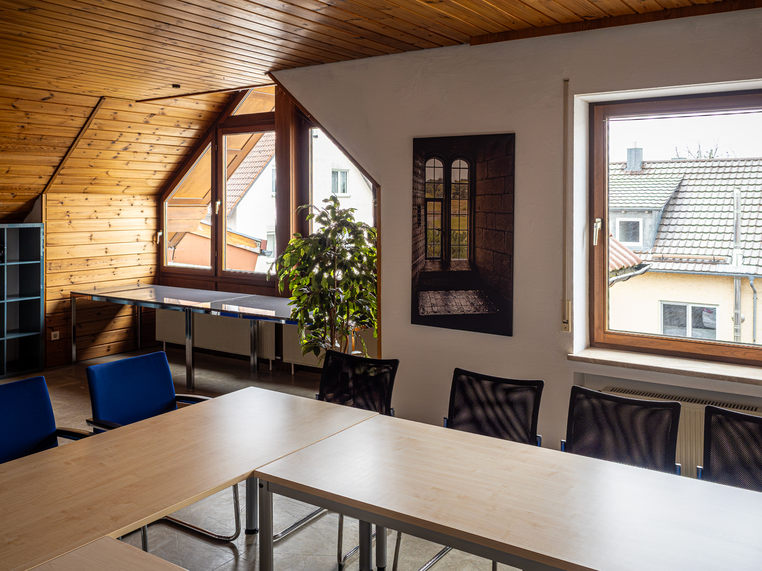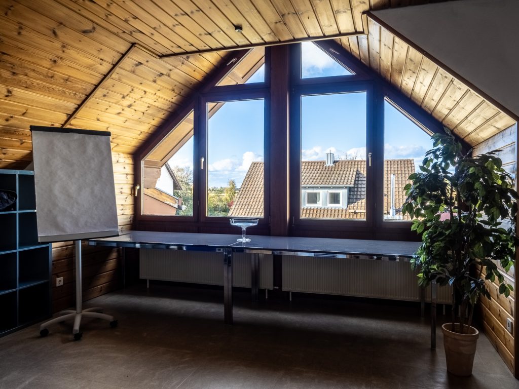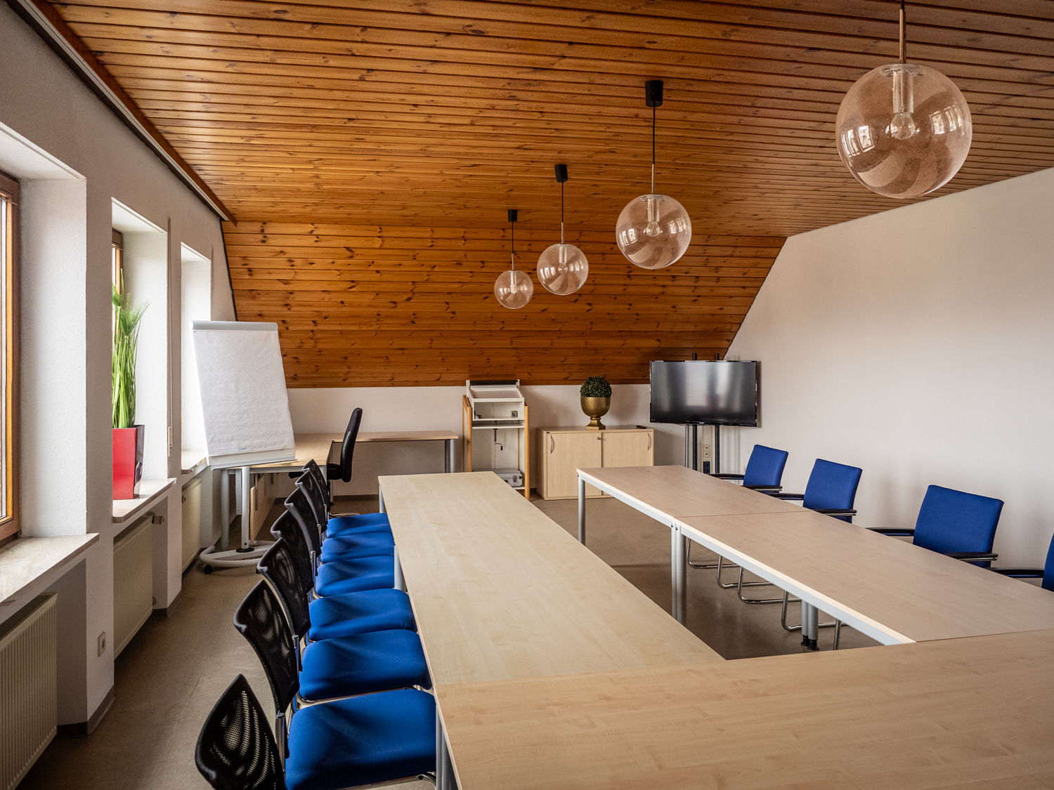 Der komfortable Konferenzraum „Öchsle“ bietet Platz für bis zu 30 Personen und überzeugt durch seine großzügige Raumaufteilung. Er eignet sich ideal für Workshops, Seminare, Schulungen oder Stuhlkreise und ermöglicht dank seiner Flexibilität ein aktives, kreatives Arbeiten.
